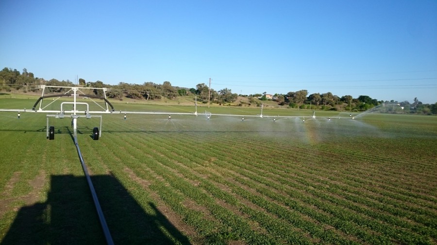 Irrigation with the Boom (pictured) through the day as it is lower to the ground so less water loss through evaporation and the wind doesn’t affect it too much.